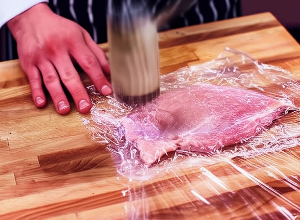 Mięso oczyść z błonek i delikatnie rozbij tłuczkiem, by miało grubość nie większą niż 2 cm.
