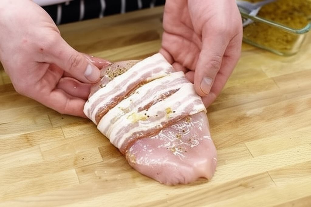 Każdy kawałek mięsa owiń dwoma plastrami boczku wędzonego.