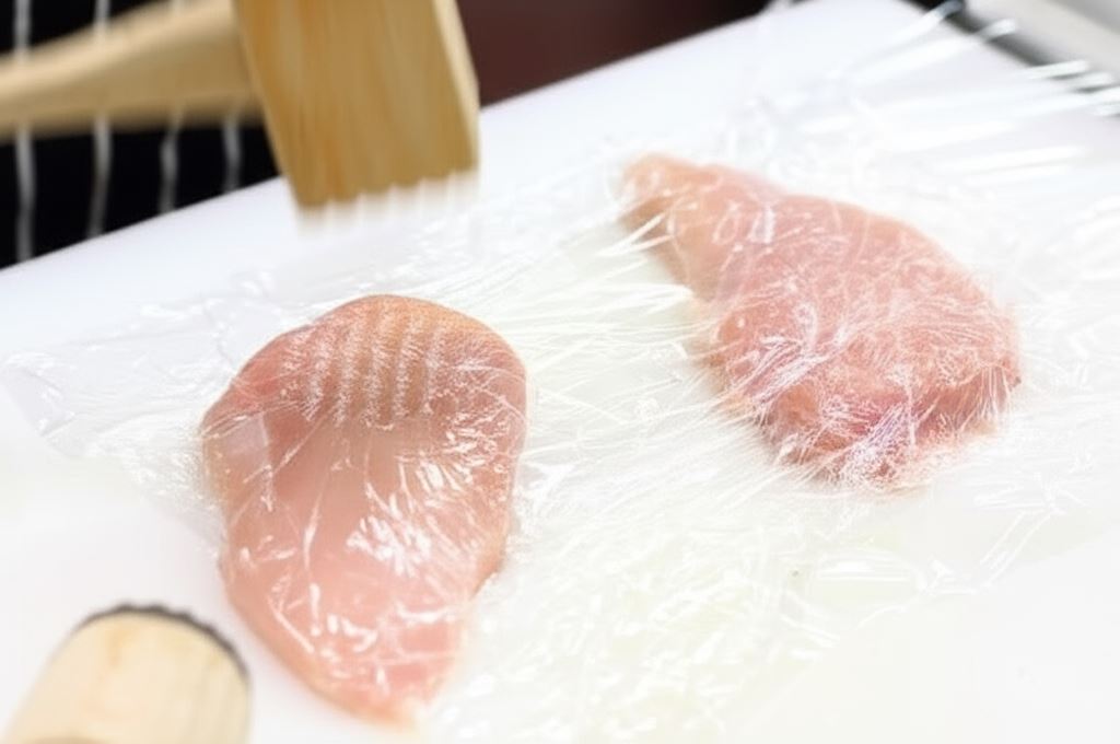 Mięso oczyść z błonek, potem delikatnie rozbij tłuczkiem, aby uzyskać grubość nieprzekraczającą 2 cm.