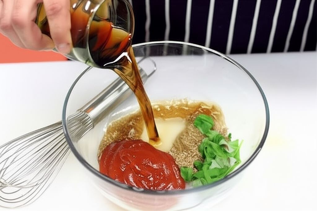 W miseczce połącz rozdrobnione w moździerzu nasiona kolendry i posiekaną bazylię z colą i Ketchupem Hellmann's Łagodnym.