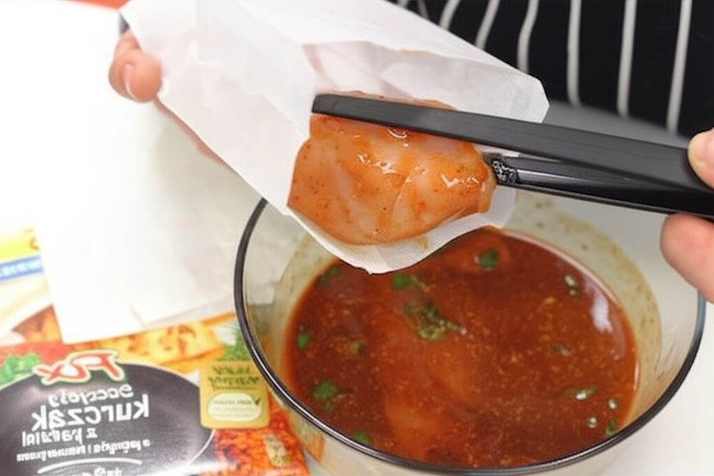 Umieść pojedynczo każdą pierś razem z marynatą do torebki pergaminowej z opakowania Fix Knorr.