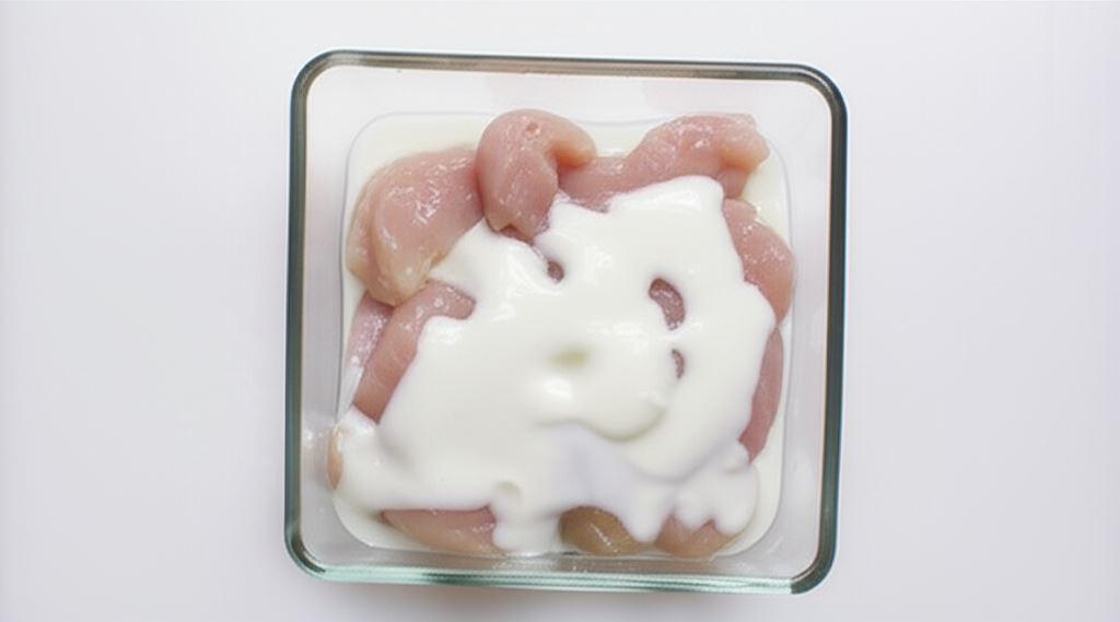 Filety potnij na paski. Zalej jogurtem, przykryj i wstaw na 2 godziny do lodówki.