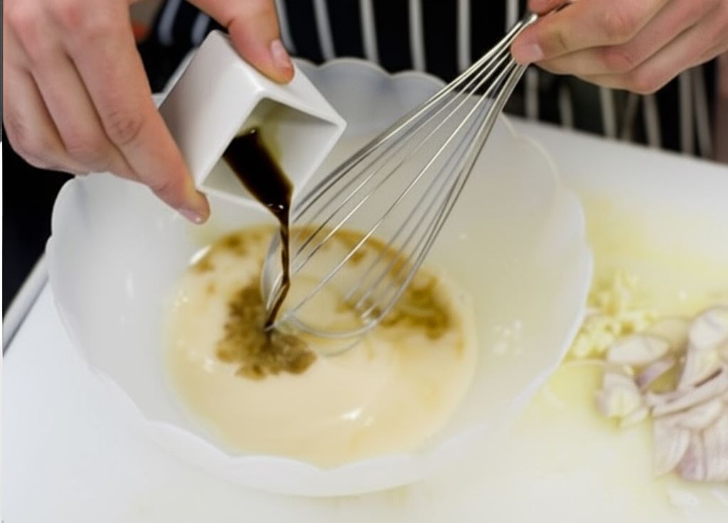 Wymieszaj sos sojowy z mąką oraz wodą.