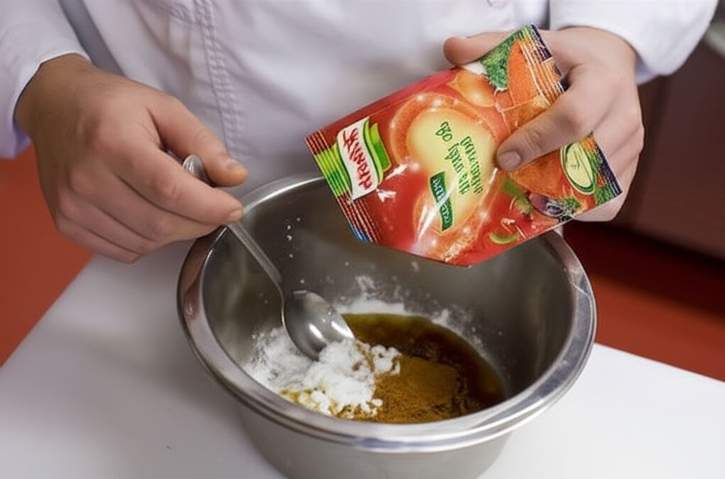 Na początek przygotuj marynatę - połącz 2 łyżki sherry, połowę mąki, 2 łyżki sosu sojowego oraz przyprawę Knorr.