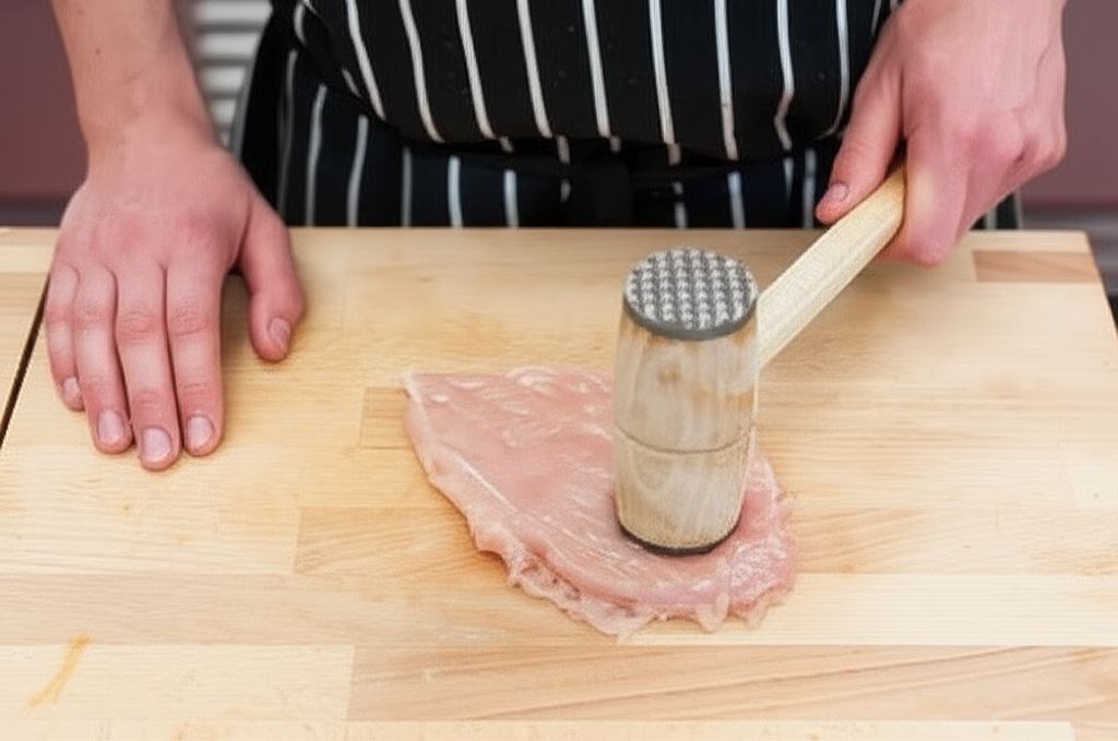 Mięso oczyść z błonek i delikatnie rozbij tłuczkiem, by miało grubość nie większą niż 2 cm.