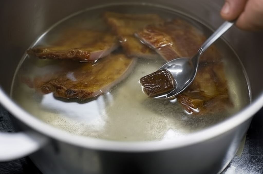 Wrzuć kostkę Knorr do wrzącej wody z mięsem.