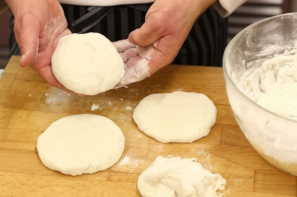 Z wyrośniętego ciasta uformuj małe placuszki o wielkości dłoni i umieszczaj delikatnie na gorącym oleju. Smaż po obu stronach na jasno złoty kolor. Po usmażeniu placuszki osusz na papierowym ręczniku, a potem gorące serwuj z gulaszem.
