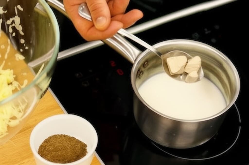 Ziemniaki obierz i ugotuj aż będą miękkie, ostudź i przepuść przez praskę. Mleko delikatnie podgrzej, wsyp drożdże oraz cukier i zamieszaj.