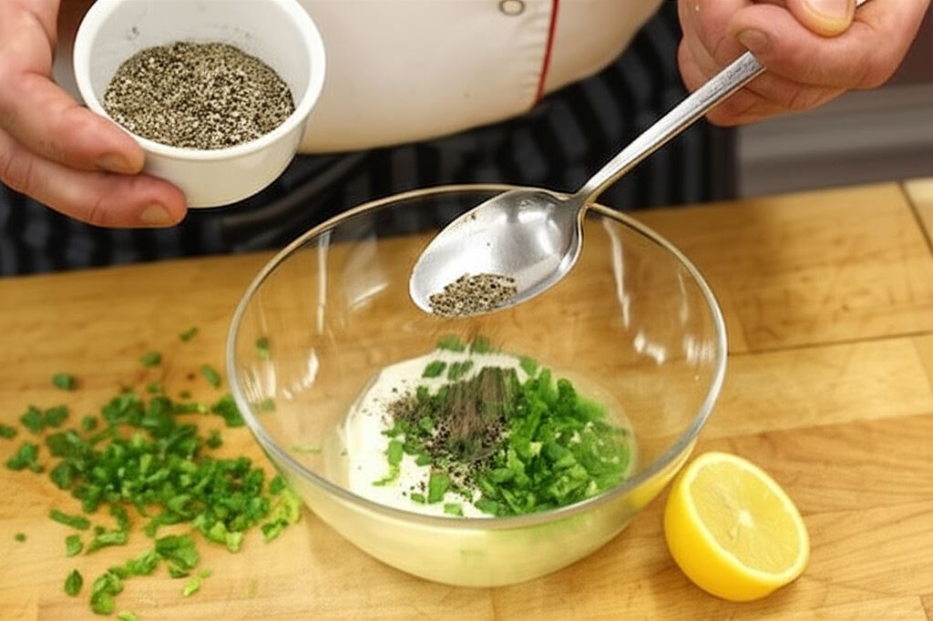 W międzyczasie wyciśnij 1 łyżeczkę soku z cytryny, połącz go ze śmietaną, posiekanym szczypiorem, dodaj pieprz Knorr i zamieszaj. Odstaw do lodówki.
