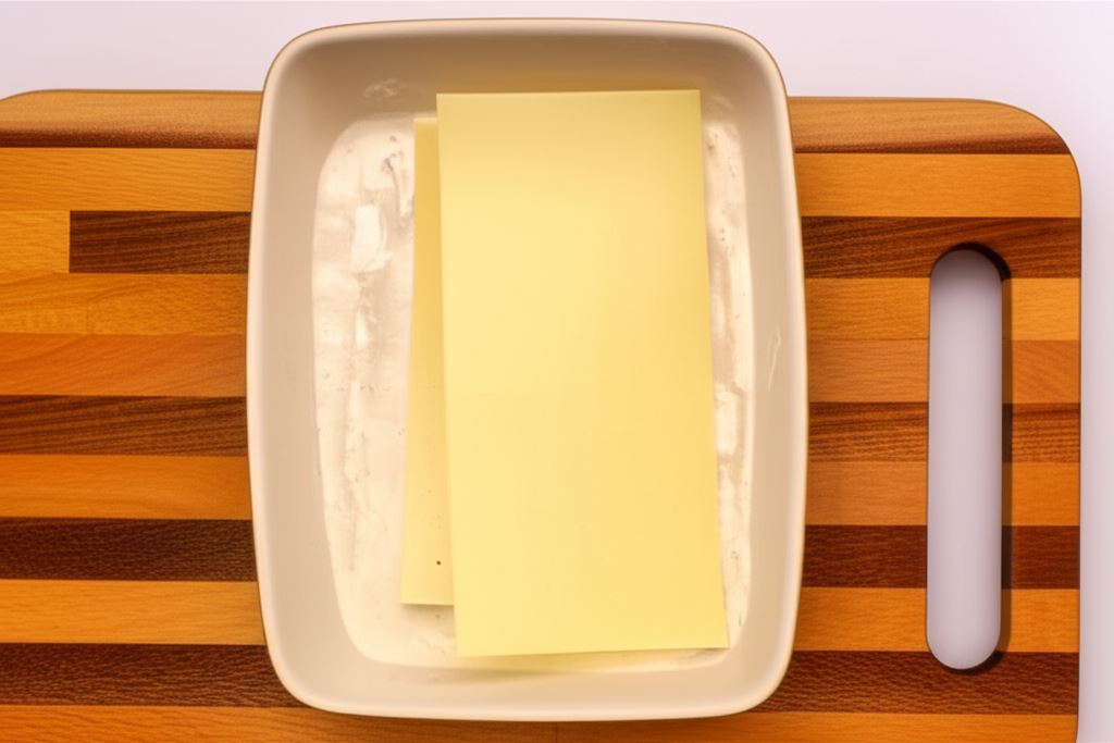 Umieszczaj lasagne najlepiej w kwadratowym lub prostokątnym naczyniu żaroodpornym. Na początku pokryj dno sosem beszamel, potem układaj surowy makaron tak, by płaty przykryły dno i nieznacznie nachodziły na siebie.