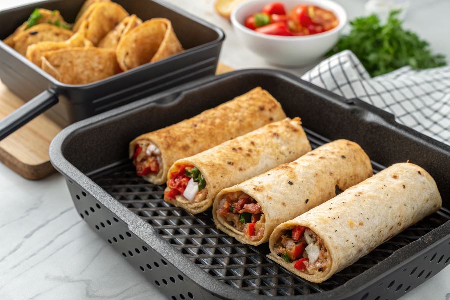 Odgrzewanie: Najlepsze rezultaty daje ponowne umieszczenie roladek w airfryer na 2-3 minuty w temperaturze 160°C. Unikaj mikrofalówki, która pozbawi je chrupkości.