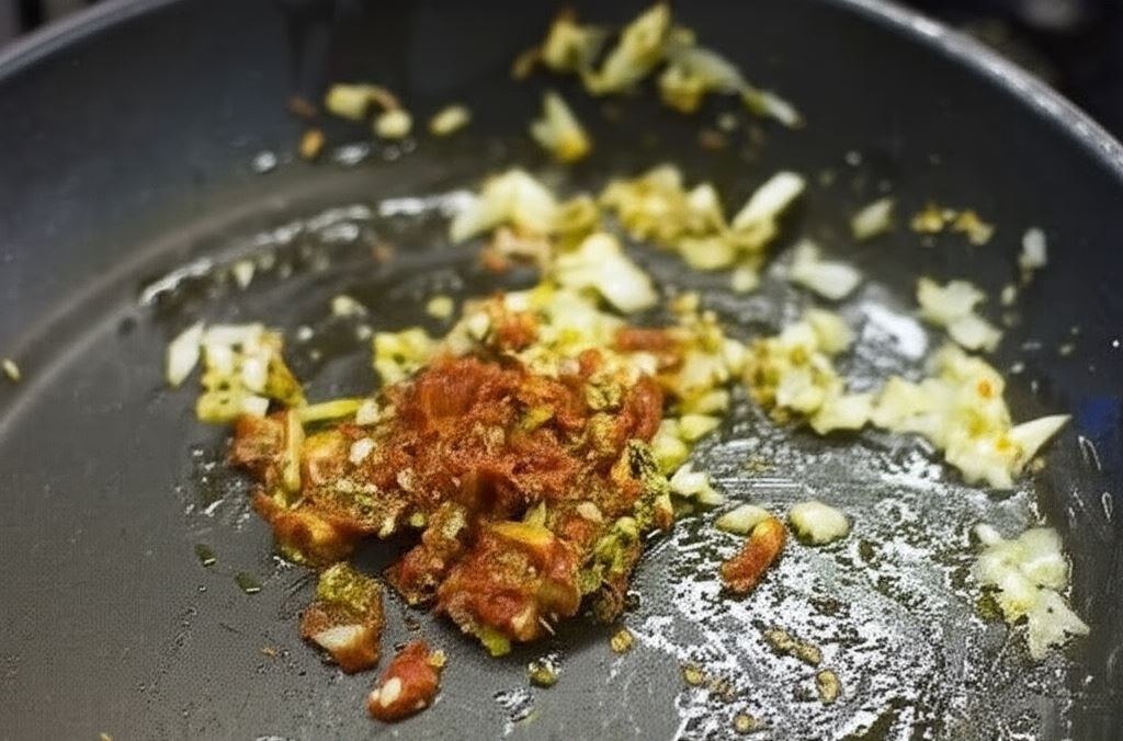 Posiekaj drobno cebulę i czosnek, zrumień połowę na rozgrzanym oleju (1 łyżka), wsyp przecier pomidorowy, mięso łyżeczkę cukru i oregano. Całość smaż, aż mięso stanie się kompletnie suche, dodaj wówczas rozpuszczony w szklance wody Knorr Naturalnie smaczne - Lasagne. Wszystko razem gotuj jeszcze 3- 4 minuty.