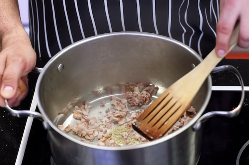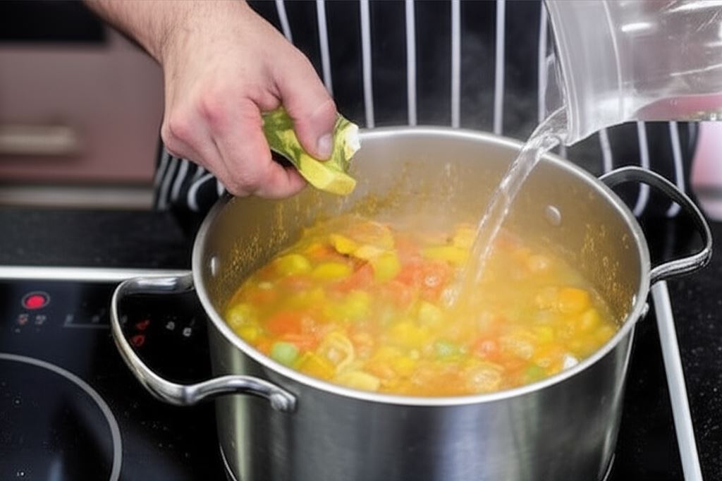 Dodaj 500 ml wody, wrzuć kostkę Knorr i gotuj wszystko na małym ogniu przez 10 minut.