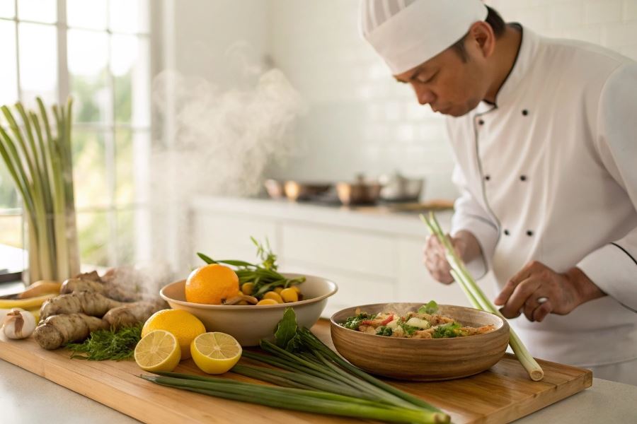 Ta kompozycja doskonale uzupełnia wietnamskie marynaty do ryb i owoców morza, a także tajskie curry. W pho bo i innych wietnamskich zupach dodaje głębi smaku, choć różni się nieco od oryginalnego profilu trawy cytrynowej.