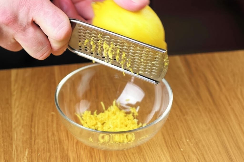 Cytrynę sparz wrzątkiem, wyczyść skórkę i zetrzyj drobno na tarce. Obraną cytrynę podziel na ćwiartki.