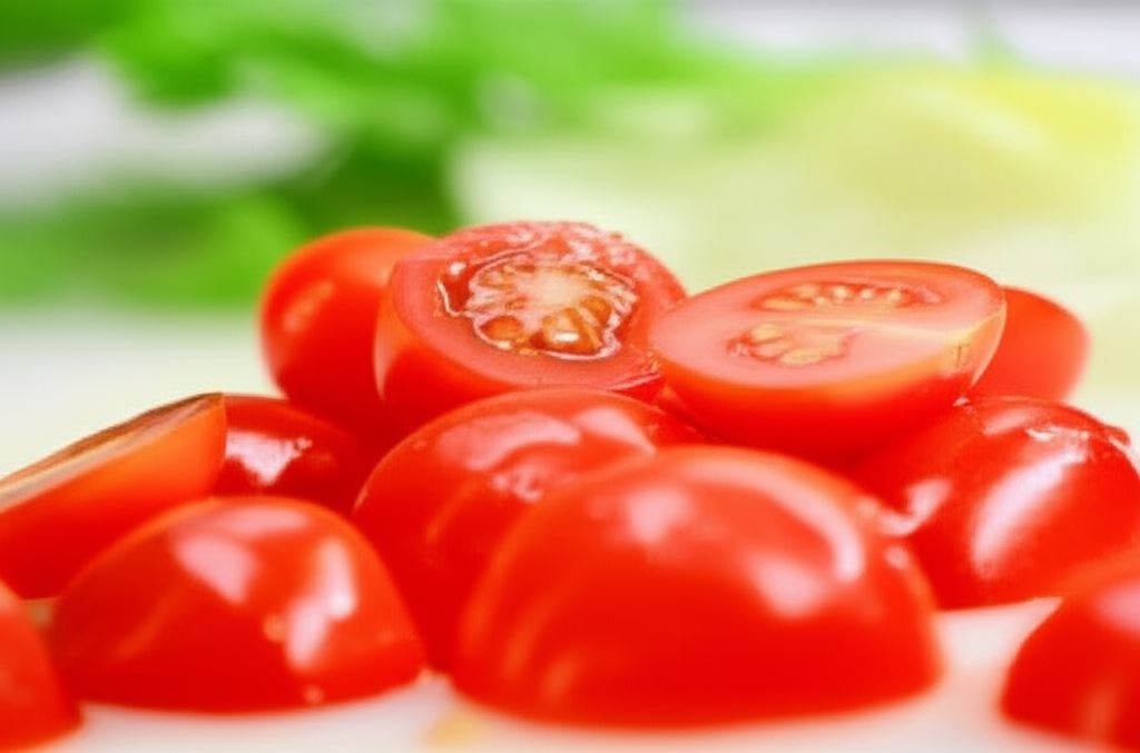 Fenkuł pokrój na bardzo cienkie plasterki, a pomidorki przekrój na połówki.