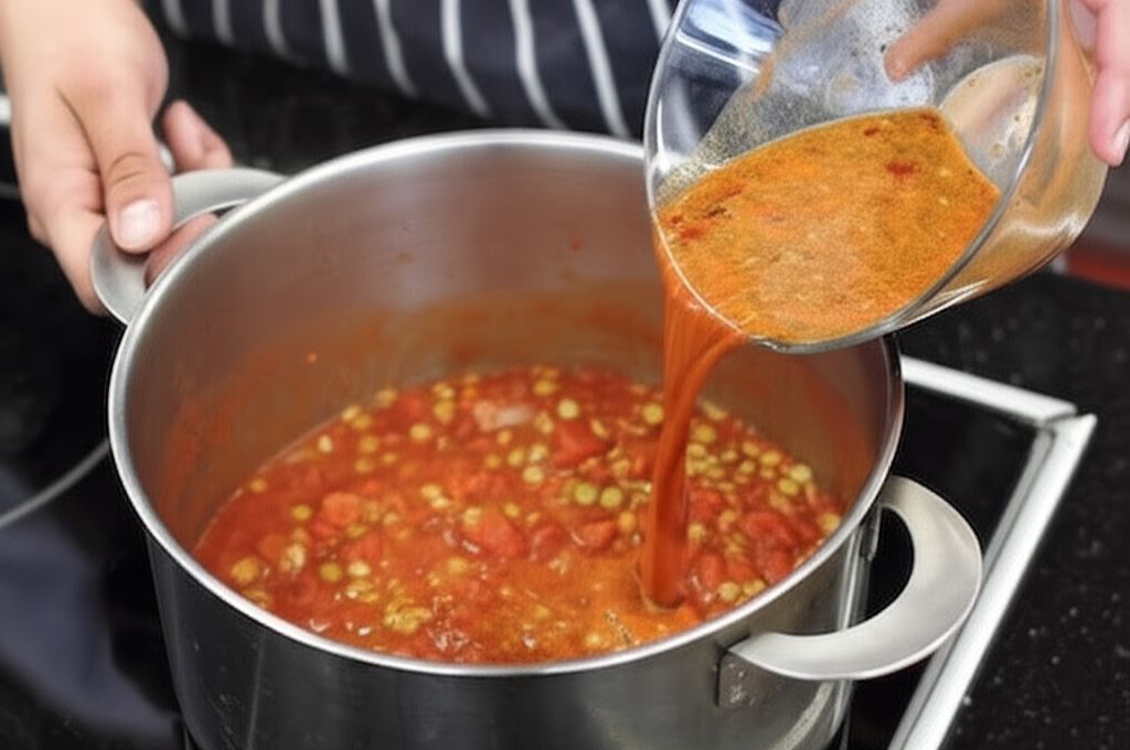 Fix Knorr połącz z jedną szklanką wody, wsyp do garnka razem z soczewicą. Wszystko starannie wymieszaj i gotuj przez około 20 minut, dopóki soczewica nie stanie się miękka.