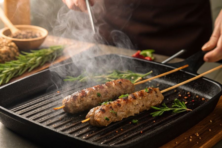 Przygotowanie kebaba lula na patelni grillowej