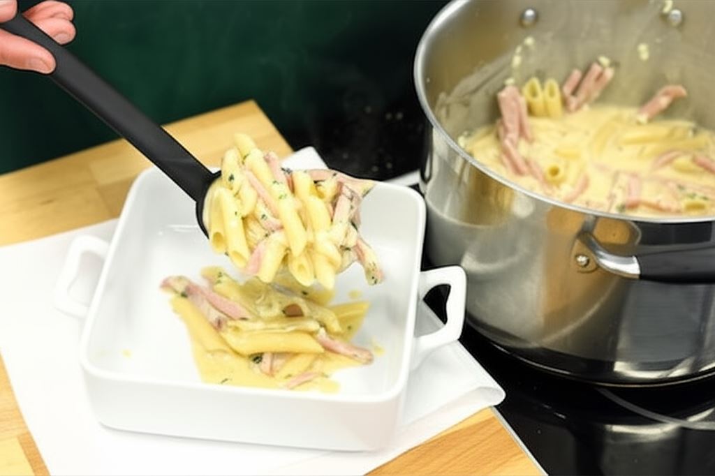 Odkryj naszą wyjątkową zapiekankę makaronową, która zachwyci każdego miłośnika comfort food! Mac and cheese z szynką to nie tylko danie kojarzone z amerykańskimi burgerami, ale prawdziwa, kremowa uczta, która łączy w sobie aksamitny sos serowy, delikatną szynkę i idealnie ugotowany makaron. Najlepsze jest to, że nie musisz wcześniej gotować makaronu – wszystko przygotowujesz w jednym naczyniu!