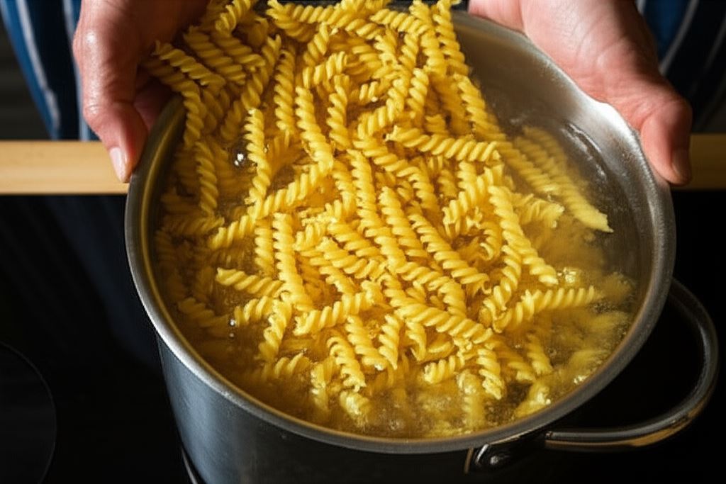 Odłóż przygotowany sos i zabierz się za przyrządzenie makaronu. Doprowadź do wrzenia 1,5-2 litry posolonej wody w dużym garnku. Weź swój preferowany rodzaj makaronu i ugotuj go zgodnie z instrukcjami, które znajdziesz na opakowaniu.