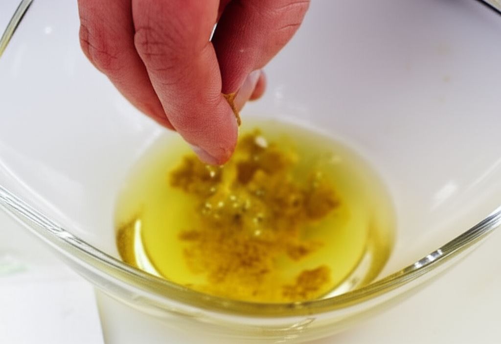 Resztę oliwy z oliwek wlej do miski i wymieszaj z kostką rosołową Knorr aż do momentu, gdy składniki całkowicie się połączą, tworząc jednolitą masę.