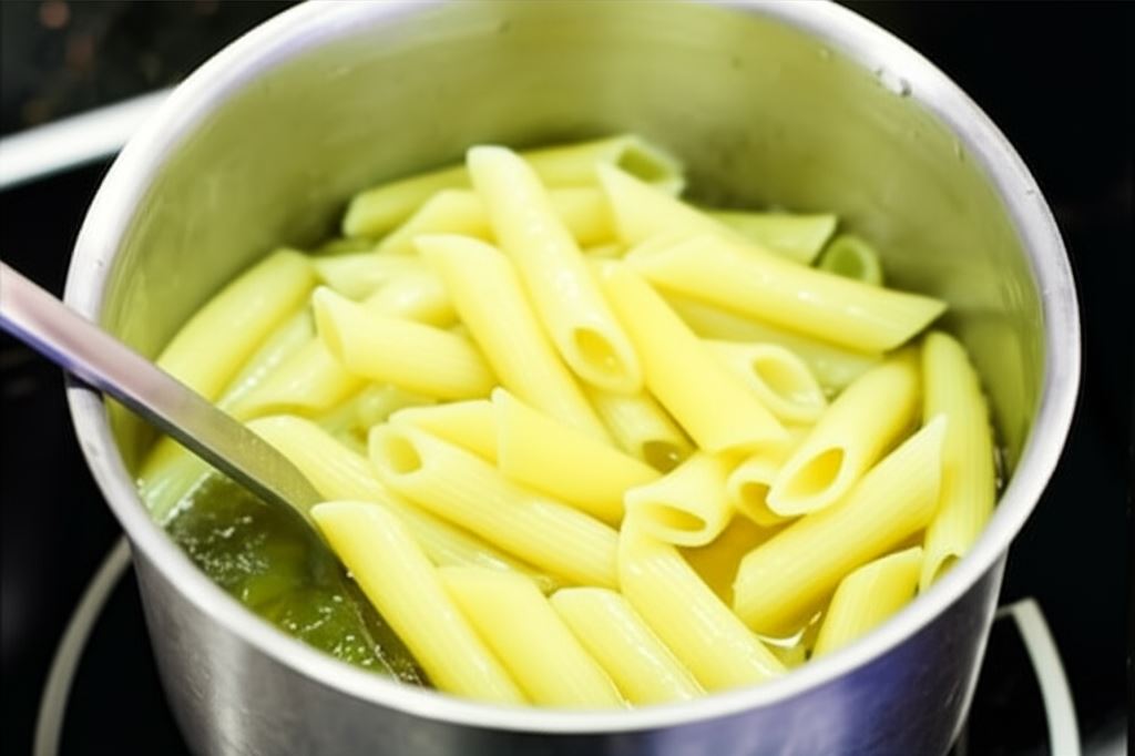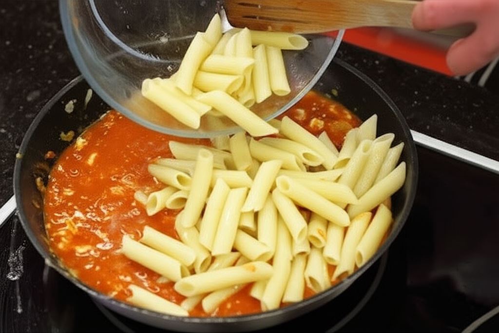 Wsyp odcedzony makaron. Całość zagotuj ponownie, zamieszaj i od razu podawaj posypaną startym serem.