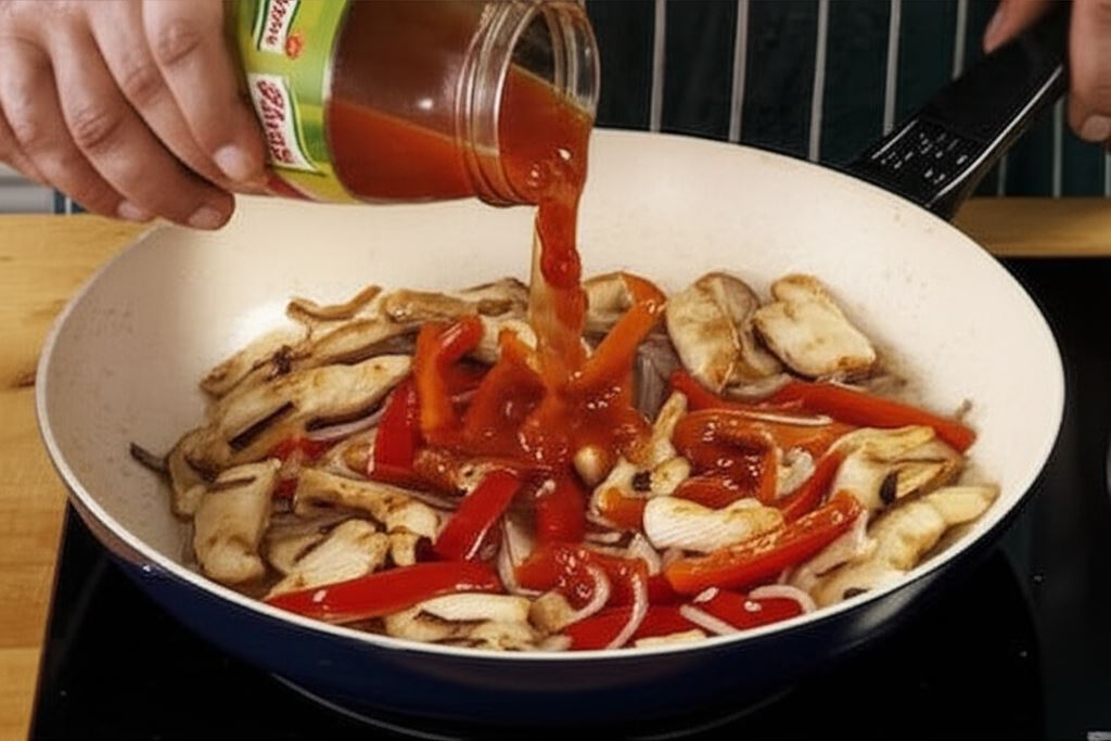 Kiedy całość zrumieni się, dodaj sos słodko-kwaśny Knorr.
