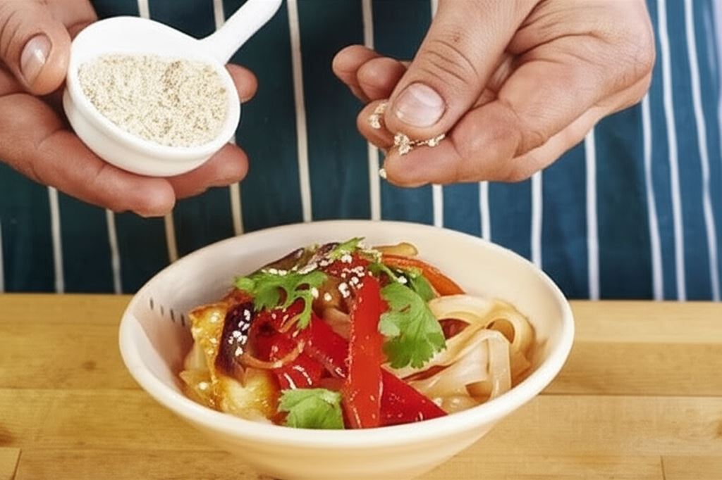 Tradycyjnie danie posypuje się świeżą kolendrą i prażonym sezamem, ale możesz eksperymentować z dodatkami. Spróbuj posiekanych orzeszków ziemnych lub nerkowców dla dodatkowej chrupkości. Jeśli lubisz pikantne smaki, dodaj odrobinę świeżej papryczki chili lub sosu sriracha. Prawdziwym wyzwaniem będzie jedzenie tego dania pałeczkami – spróbuj!