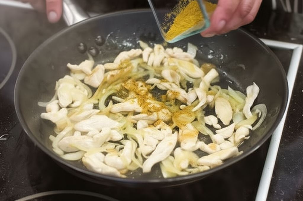 Makaron w sosie curry z kurczakiem – orientalna uczta w Twoim domu