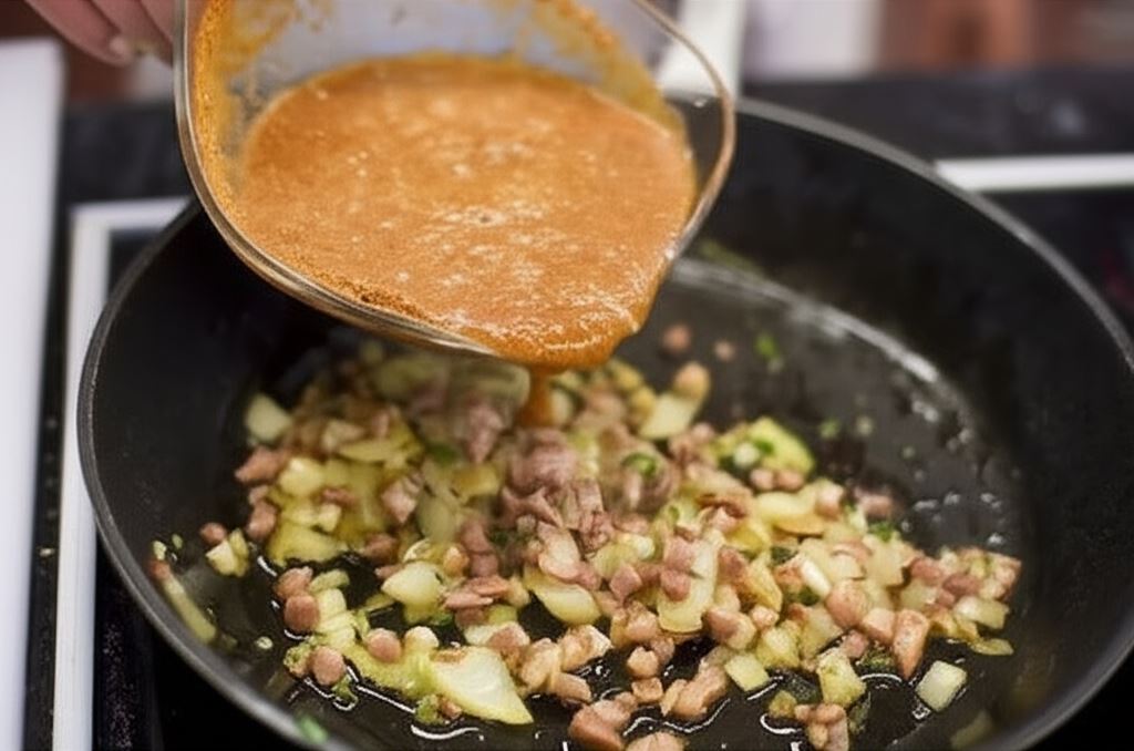 Wlej sos do patelni i dodaj pokrojonego pomidora.
