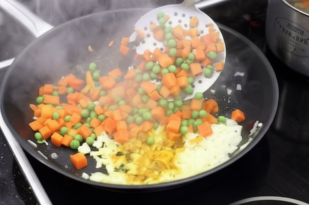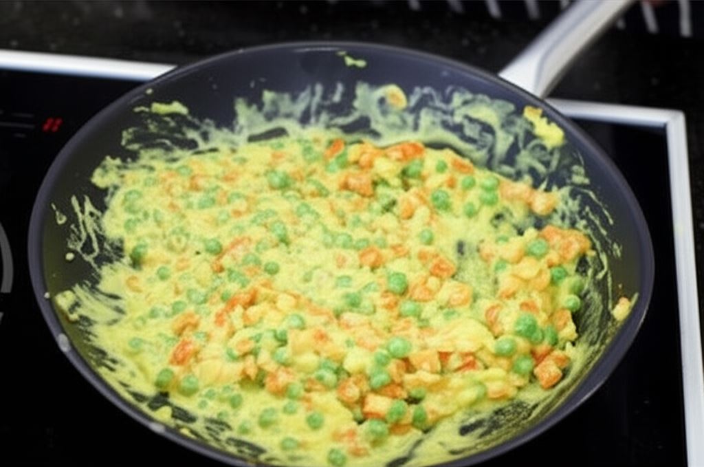 Klasyczne połączenie marchewki i groszku zyskuje nowe, orientalne oblicze dzięki aromatycznemu curry! Ta prosta, a jednocześnie wyrafinowana potrawa zachwyci Cię kremową konsystencją i intensywnym smakiem. Delikatnie podsmażone warzywa w aksamitnym sosie curry to doskonały sposób na urozmaicenie codziennego menu.