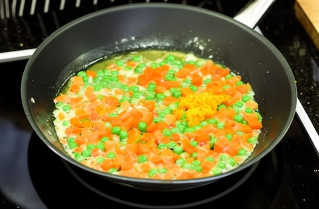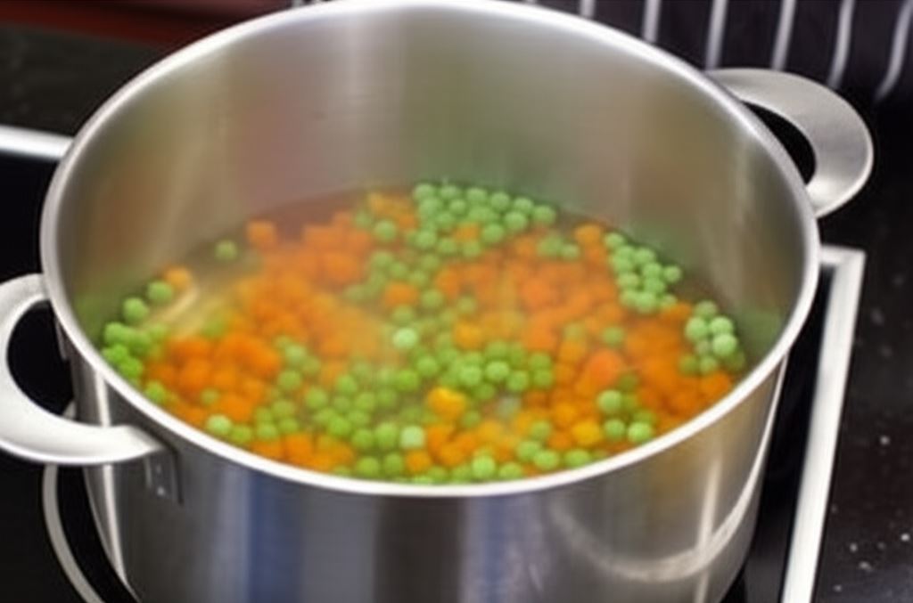 Gotuj warzywa przez 1 minutę. Po ugotowaniu odcedź i zachowaj 3-5 łyżek wody z gotowania.