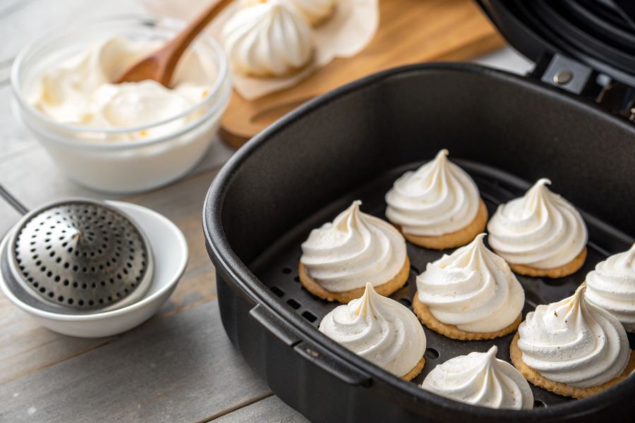 - Pozostaw bezy w airfryer do całkowitego wystygnięcia – to zapobiega pękaniu