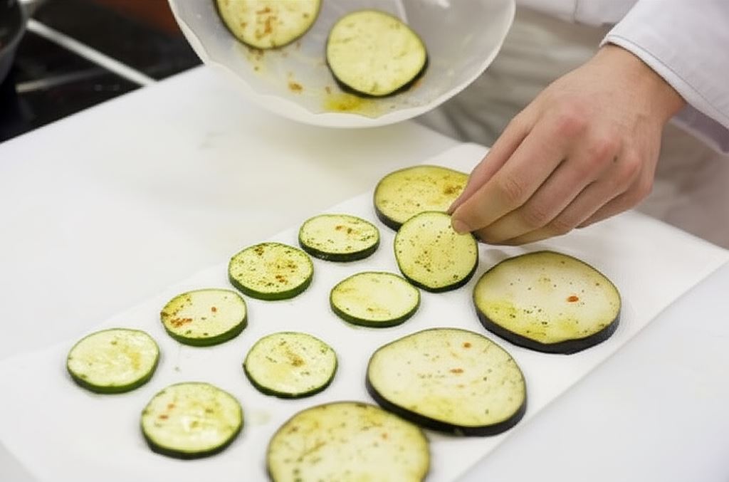 Bakłażana i cukinię pokrój na plastry, posyp przyprawą Knorr i pozostaw na godzinę, aby usunąć gorzki smak.