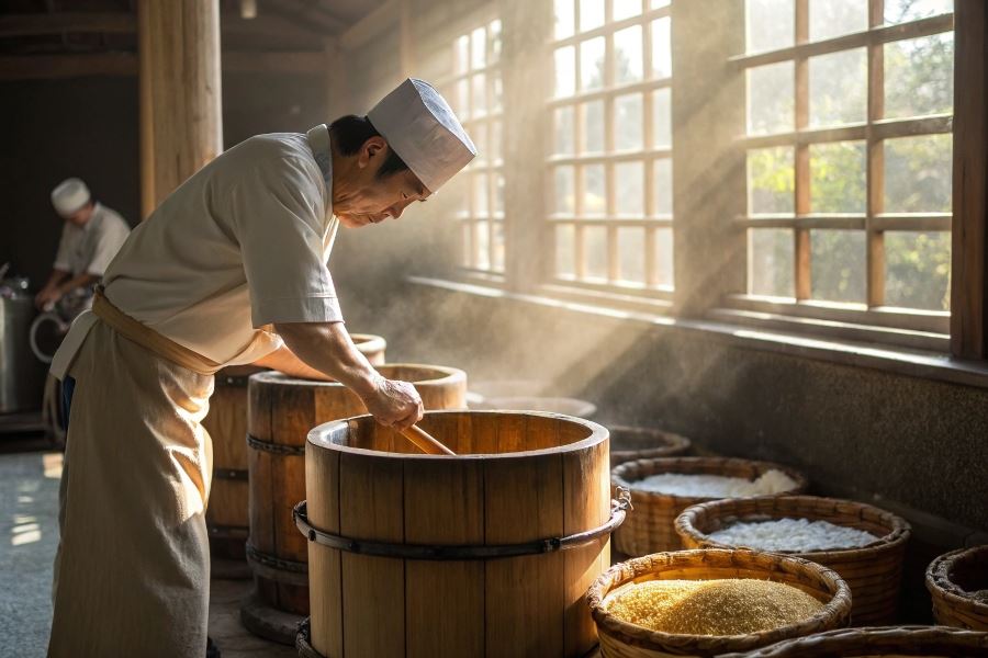 Pasta miso to fermentowany produkt sojowy o wielowiekowej tradycji w Japonii, gdzie pierwsze wzmianki o niej pochodzą z okresu Heian (794-1185). Proces wytwarzania rozpoczyna się od przygotowania koji – ryżu lub jęczmienia zaszczepionego grzybem Aspergillus oryzae. Następnie koji miesza się z gotowaną soją, solą morską i wodą, tworząc masę, która fermentuje od kilku tygodni do nawet 3 lat. Długość fermentacji bezpośrednio wpływa na głębię smaku – im dłuższy proces, tym intensywniejszy, bardziej złożony profil aromatyczny.