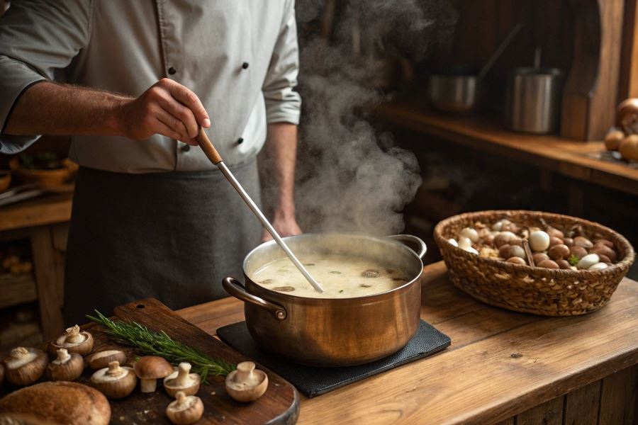 W naszej firmie PrimeCook przykładamy szczególną wagę do jakości składników używanych w naszych zupach. Starannie selekcjonujemy grzyby i dbamy o idealne proporcje, by nasze produkty zachowywały autentyczny smak domowych przygotowań.