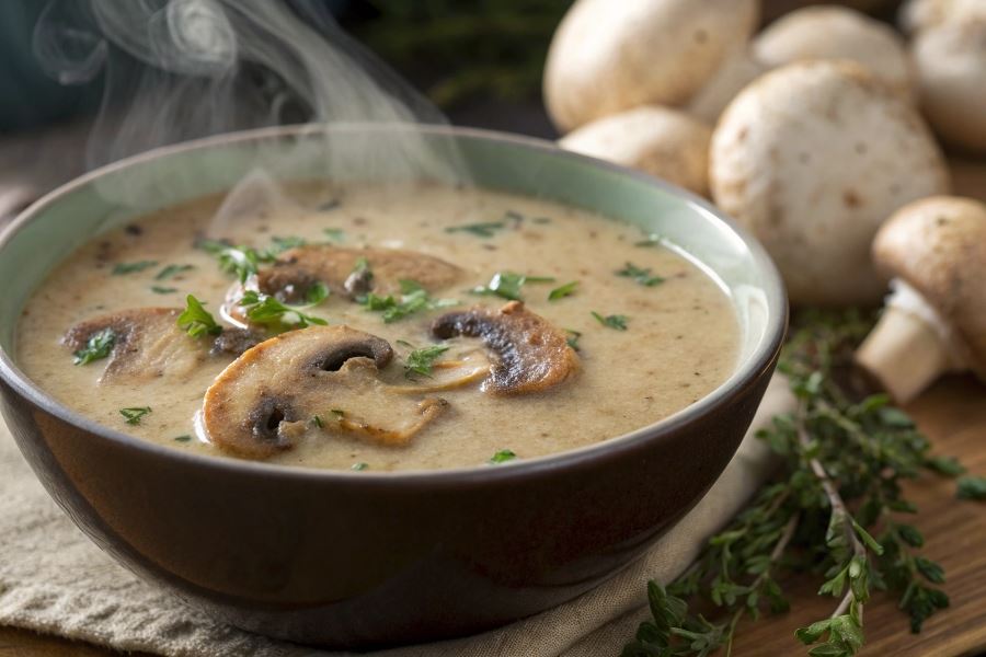 Sekret idealnej konsystencji zupy krem bez ziemniaków tkwi w odpowiednich proporcjach – na 500 g grzybów wystarczy 300 g kalafiora lub 250 g selera korzeniowego.