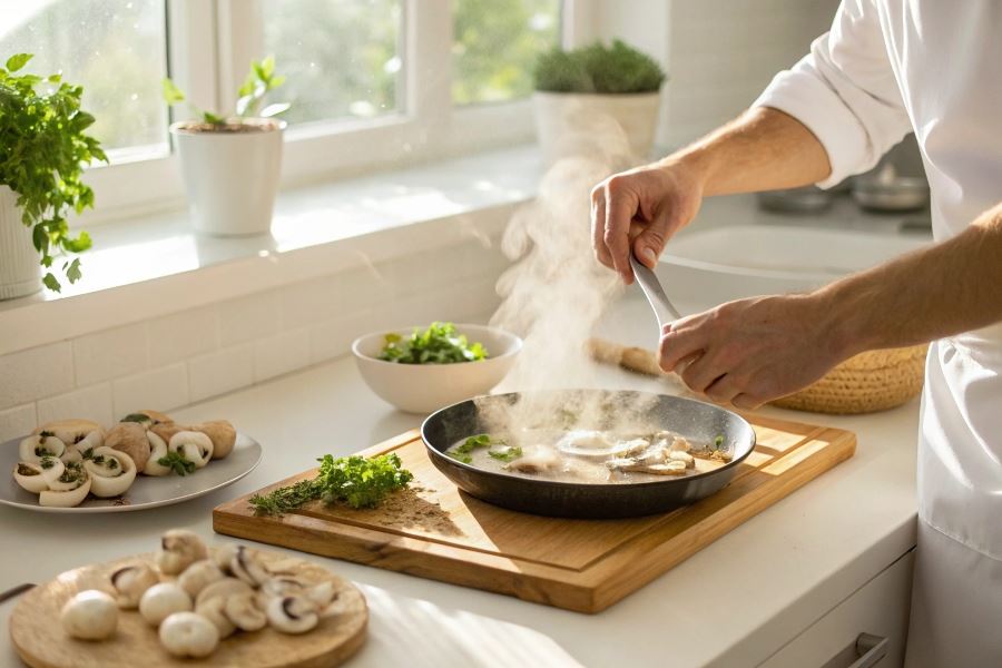 Dla uzyskania intensywnego aromatu warto zastosować technikę dwuetapowego smażenia – najpierw na suchej patelni do odparowania wody, następnie z dodatkiem tłuszczu dla karmelizacji i wzbogacenia smaku.
