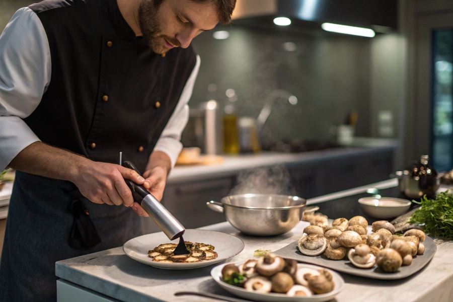 Molekularna gastronomia wykorzystuje pieczarki do tworzenia pianek, żeli i proszków, które stanowią element dekoracyjny i smakowy na talerzach najlepszych restauracji. Trend łączenia pieczarek z cytrusami – szczególnie z kumkwatem i yuzu – wprowadza nieoczekiwaną świeżość i kwasowość, przełamującą ziemisty charakter grzybów.