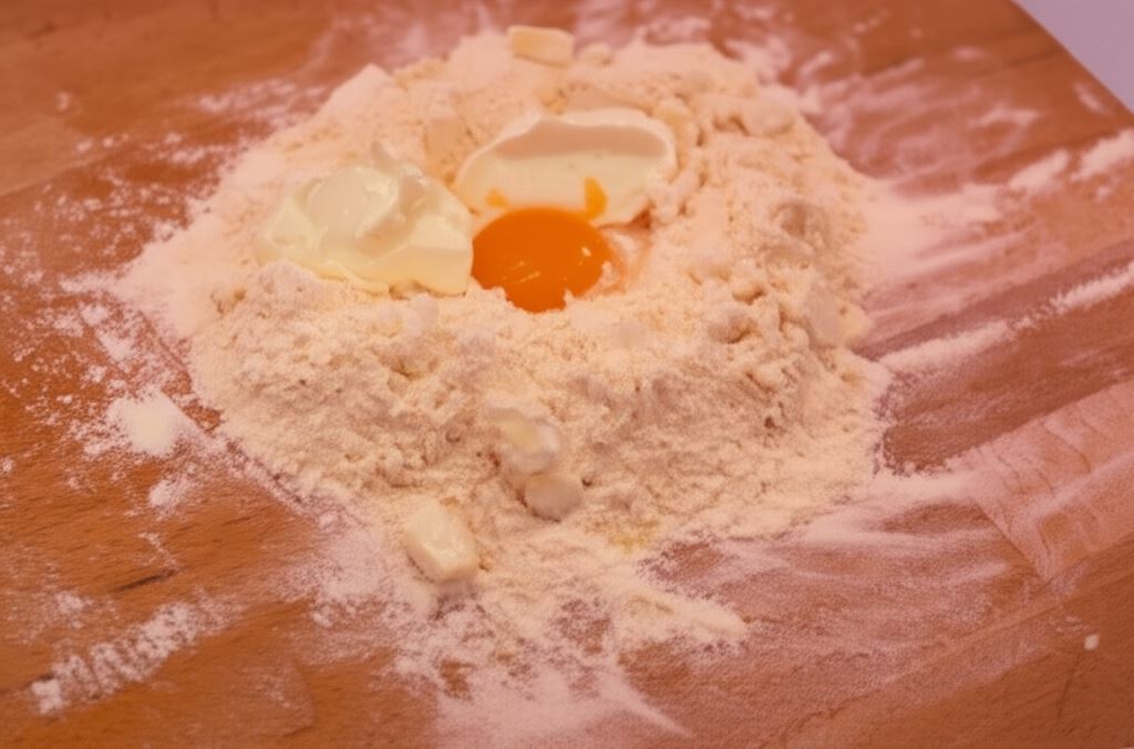 Wymieszaj mąkę z serkiem, kostką masła, szczyptą soli, 1 żółtkiem i sokiem z cytryny. Umieść ciasto w zimnym miejscu.