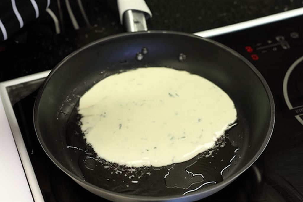 Sporządź ciasto łącząc razem: mleko, jajka, mąkę, wodę, olej, oraz odrobinę soli i łyżkę siekanej natki. Kiedy ciasto osiągnie jednolitą, gładką konsystencję, usmaż naleśniki.