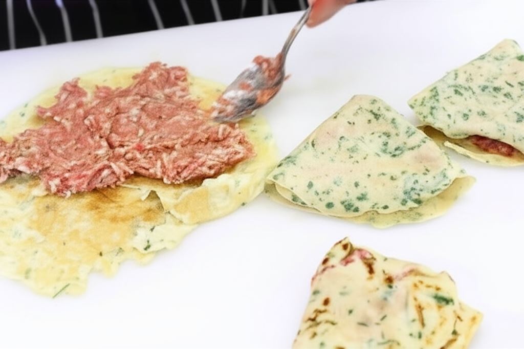 Przygotowanie rozpoczynamy od idealnie gładkiego ciasta naleśnikowego z dodatkiem posiekanej natki. Na usmażone placki nakładamy farsz z mielonego mięsa wymieszanego z ryżem i przyprawami, a następnie składamy w zgrabne koperty. Ułożone jeden obok drugiego w naczyniu żaroodpornym, zalewamy aksamitnym sosem pomidorowym z bazylią i zapiekamy do perfekcji. Efekt? Soczyste, aromatyczne danie, które łączy w sobie to, co najlepsze z dwóch kulinarnych światów!