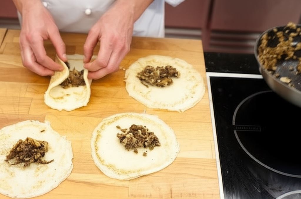 Leśne Smaki na Talerzu: Naleśniki z Pieczarkami w Sosie Borowikowym