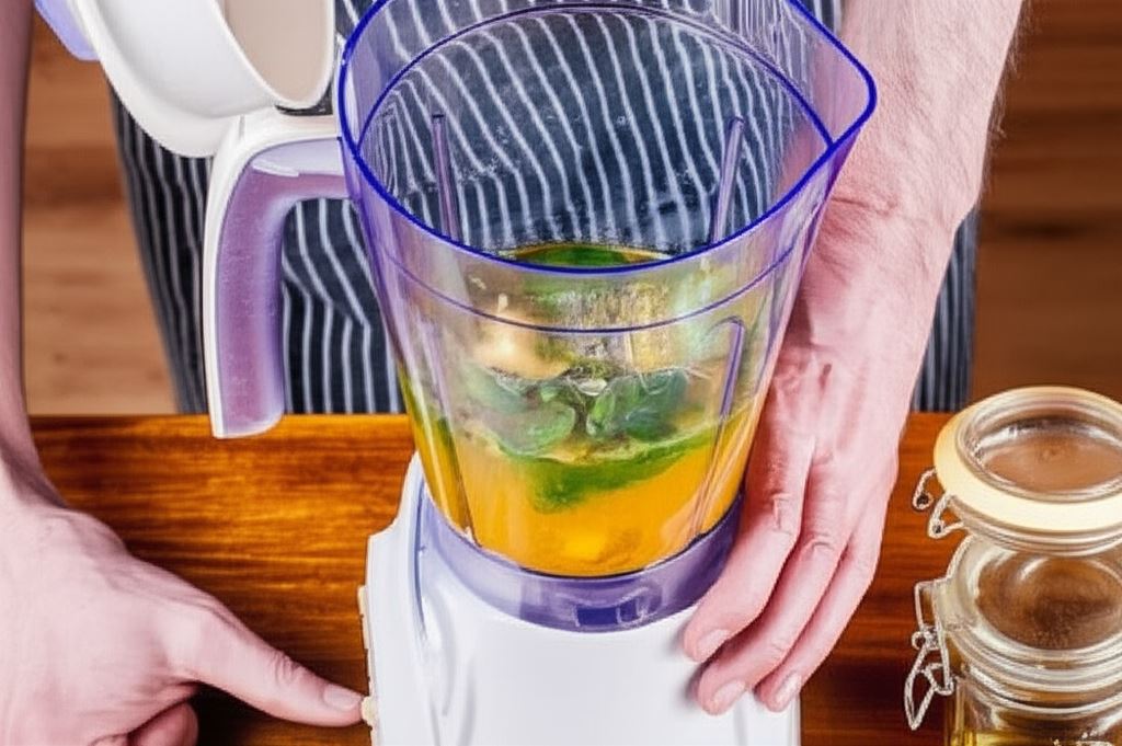Wszystkie składniki (sok z cytryny, imbir, miód, bazylię i tymianek) wrzuć do kielicha miksera, dodaj wodę, całość dokładnie zblenduj, a następnie przecedź.