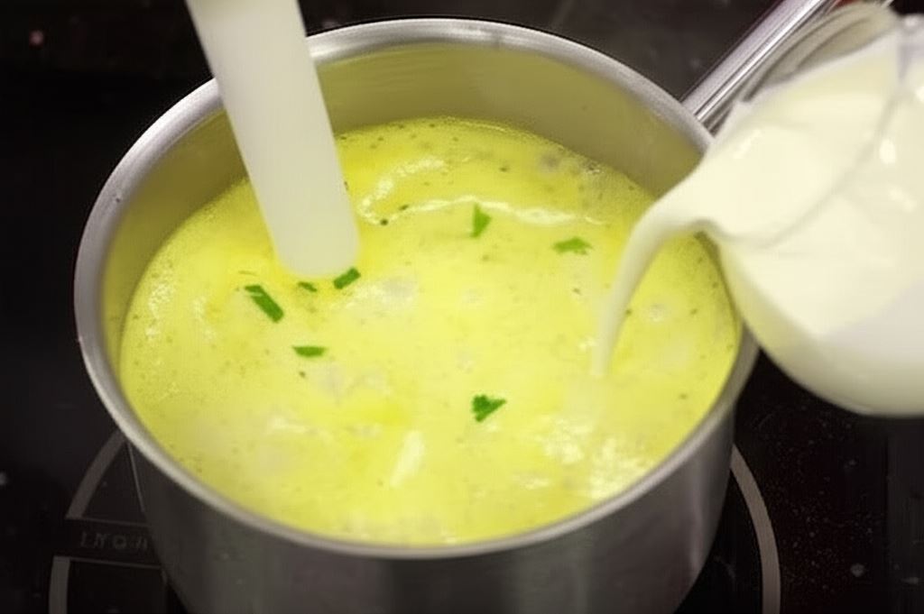 Wlej śmietanę i przypraw solą oraz pieprzem do smaku, jeśli uznasz, że jest to potrzebne.