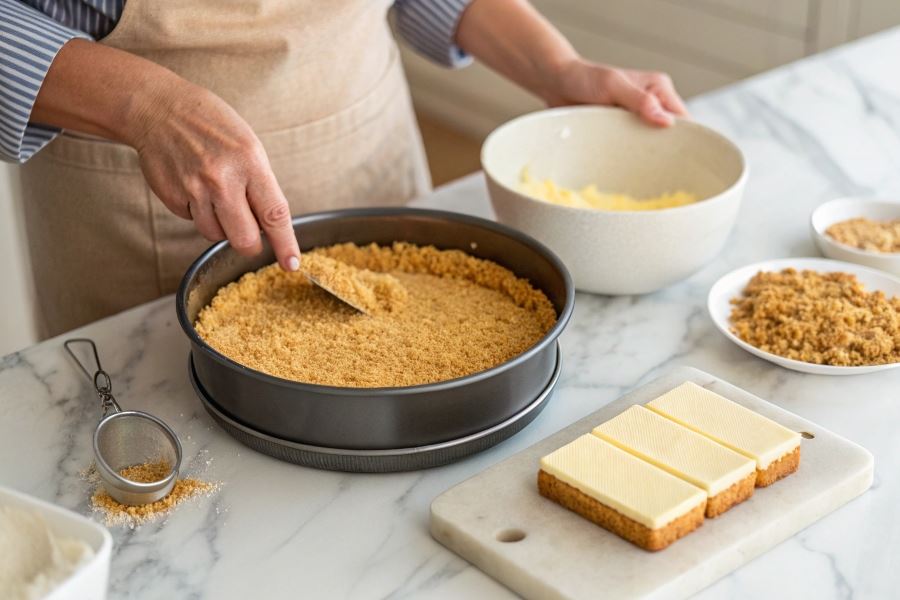 Prawidłowo przygotowany i schłodzony spód herbatnikowy zachowa swoją strukturę po zalaniu masą serową, nie nasiąknie nadmiernie i zapewni wyraźny kontrast tekstur w gotowym deserze.