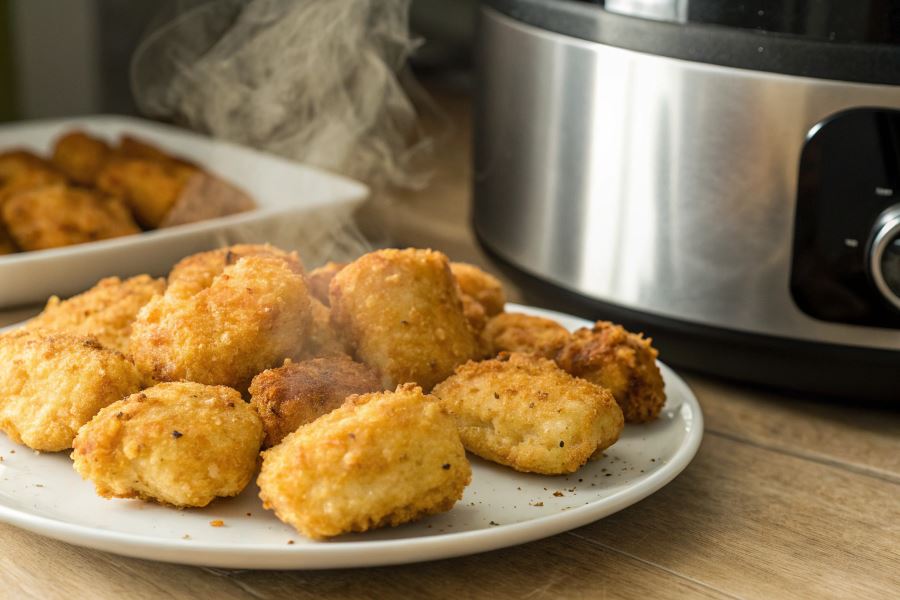 Multicooker eliminuje konieczność posiadania dużej ilości oleju, co czyni proces przygotowania nuggetsów znacznie czystszym i bezpieczniejszym, szczególnie w domach z dziećmi.