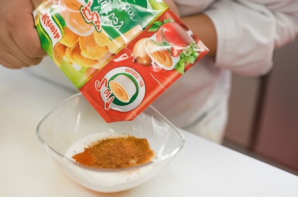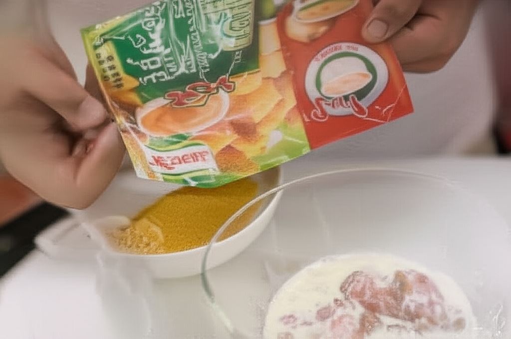 Zanurz paski kurczaka w napoju zmieszanym z jajem. Potem obtocz w panierce Fix Nuggetsy z sosem meksykańskim Knorr wymieszanej z wiórkami kokosowymi.