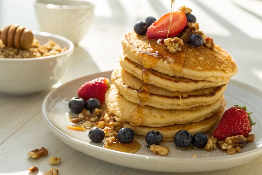 Naleśniki owsiane przewyższają klasyczne opcje śniadaniowe pod wieloma względami. W porównaniu do tradycyjnych naleśników pszennych zawierają: