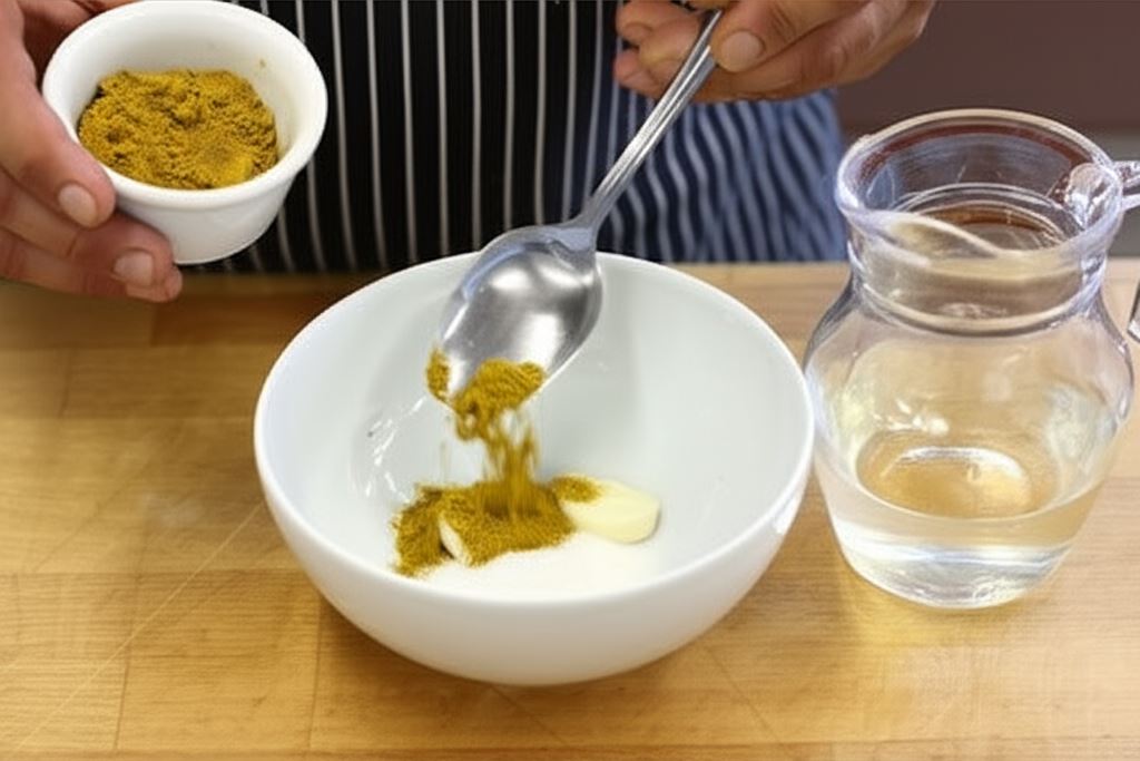 Sporządź zalewę – połącz ocet, curry, czosnek, cukier.